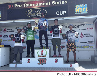 福岡県遠賀川で開催されたJB TOP 50第3戦“エバーグリーンCUP”はトーナメントの全日程を終了。予選を通過した上位30名で競われたこの日、トーナメントリーダーの福島健はノーウエイトという結果に。この日気を吐いたのは前日までウエイト順で6位につけていた青木大介だった。この日2尾のウエイインながら3番手のウエイトとなる2,250gをマークした青木はトータルウエイトを6,196gとして5人抜きでの逆転優勝。以下、2位五十嵐誠、3位藤田夏輝、4位加木屋守、5位金澤匡秀という結果となった。トーナメントの詳細および成績は、JBの公式サイト“NBC NEWS”にて。