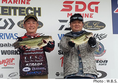 W.B.S. Pro Tournamentは今シーズンの最終戦となる第5戦が茨城県霞ヶ浦の土浦新港を拠点にキックオフを迎えた。第5戦はツーデイで競われる。参加30チーム中バスをウエイインしたのは24チーム、5尾のリミットメイクは2チームという状況の中、3尾で3,285gをウエイインして初日をリードしたのは今井新・藤田雅大チームだった。以下、上位陣は2位大塚拓・中澤裕大チーム、3位橋本卓哉・鈴木崇太チーム、4位坂田泰信・渡部記史チーム、 5位松村寛・鳥羽厚司チームとなっている。大会に関する詳細はW.B.S.の公式サイト、W.B.S.onLINEにて。