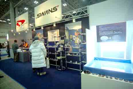 「SWANS」ブランドをリリースしている山本光学。今年は同ブランドをバス、フレッシュウォーター用とソルト用の2大ラインにわけた形で発表していた。 |