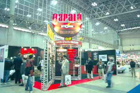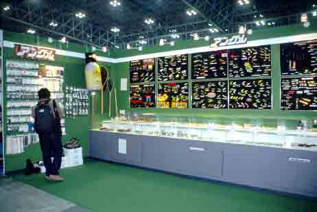 「BLUE FOX」ブランドのルアーや、ラパラブランドの各種小物を展示。 |