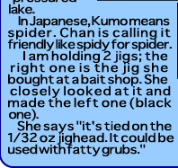 she asked me how she can tie jigs by herself. I didn't wanna asnwer