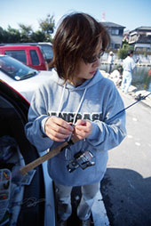 大会の数日前、某バス釣り雑誌のデザイナーのOさんがbasswaveオフィスに乱入してきた。「朝霞ガーデンに行こうよ」と仕事中の我々を誘うので、「仕方ないですね〜」と言ってボクが行くことに(実は「超ラッキー!」と密かに思っていた……)。