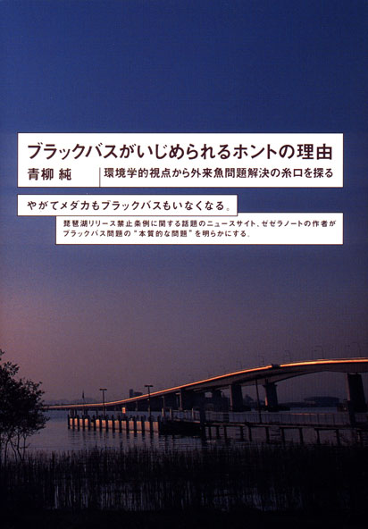 BEAT 14 「ブラックバスがいじめられるホントの理由」(2003/6/27) ネットでバスフィッシングの情報を集めているアングラーで、 なおかつ昨今のバス問題について関心があれば「ゼゼラノート」というサイトはご存じのことだろう。 かくいう私自身もしっかりブックマークをつけており、ほぼ毎日のように閲覧している。 ご存じない方のためにチョロッと解説すると、「ゼゼラノート」とは、ある情報の集積ページだ。 ここで集積されている情報は、外来魚のキャッチ&リリース禁止を盛り込んだ、 滋賀県の「琵琶湖のレジャー利用の適正化に関する条例」いわゆる「リリ禁条例」に関するもの。 リリース禁止条例に関する現在進行形のニュースはもちろん、 条例の制定にいたるまでの経緯やこれに関連する資料などが集められているのだ。 このサイトの主宰者であるゼゼラさんこと青柳純さんが、 このたび「ブラックバスがいじめられるホントの理由」という本を出版した。 この本は、もともと滋賀県立大学環境科学部の学生であった青柳さんが、 卒業論文として執筆した「外来魚問題の構造と対策の検討」を元にまとめたものだという。 「環境学的視点から外来魚問題解決の糸口を探る」という副題にもあるとおり、 「そもそも、外来魚問題とはなんぞや」という点が明解に書かれている。 実は、我が国における外来魚問題というのは、その論点自体が明解になっていないケースが多い。 たとえば、一般のメディアでよく使われる「生態系」や「生物多様性」という視点での議論。 外来魚が在来の生態系になんらかの影響を与える……これは紛れもない事実であり、 この視点からはバスやブルーギルといった外国からの移入生物は「排除」以外に選択肢など存在しない。 ただし、この議論に関する問題点は、外国から移入された生物に限らない。 ハス、ワタカ、ゲンゴロウブナ、ホンモロコ、ビワヒガイ……。 琵琶湖の固有種とされる多くの魚類は、すでに全国各地へと拡散し、定着している。 琵琶湖の魚に限らず、関東地方で魚食性の強いナマズが確認されるようになったのは江戸時代以降の話だし、 関東地方のシナイモツゴは、移殖されたモツゴとの競合に敗れて絶滅している。 さらに、全国各地への湖産アユやワカサギなどの移殖は現在進行形なのだ。 つまり、「生態系」や「生物多様性」を考える場合、 バスやブルーギルなど外国から移入された生物だけを特別視すると、その本質を見失ってしまうのだ。 また、私たち日本人は、これまでこういった移入種を利用してきたという背景もある。 「生態系」や「生物多様性」を突き詰めると、「外来種はすべて排除」という結論に達してしまう。 ところが、現実的には私たちが普段食べている米を含めた食料も、そのルーツは外国にあることが多い。 そうなると「外来種はすべて排除」という考え方はあまりに現実離れしているし、 現実問題として、バスやブルーギルだけを国内から完全に駆除するのは不可能だ。 少々脱線してしまったが、この本はこういった移殖種に関する問題の論点を整理し、 極めて現実的な解決法を導くための可能性を示唆している。 青柳さんはこの本のあとがきの中でも、こう記している。 『本書では、「外来魚は有効活用するべきだ」とか「外来魚は完全駆除すべきだ」といったような、 明確な結論を示すことはしませんでした。それは、外来魚よって何が起きているのかを適確に把握した うえで、何のためにどんな対策を講じようとしているのかを明確にした取り組みを行なうことこそが大 切だと考えるからです。その取り組みは、結論において、外来魚を有効に活用するものになるかもしれ ませんし、外来魚を駆除するものになるかもしれません。重要なのは、その結論が、建設的な議論が行 なわれた上での合理性のあるものであるかということなのです。ごく当たり前のことですが、残念なが ら外来魚問題ではそれがまったく不充分なのが実情です』。 建設的な議論を行なうためにはどんな調査や現状把握が必要なのか、 合理性のある結論はいかにして導き出すものなのか……この本は、そんなことを考えさせてくれる。 「生態系を守るため」という、「なんとなく」分かりやすい理由によって駆除されている、 琵琶湖のバスやブルーギル。 しかし、現実に目を向ければ、この駆除の犠牲になっている在来種は確実に存在するし、 在来種の生息環境向上を目的とした対策は皆無に等しいのだ。 『やがてメダカもブラックバスもいなくなる。』というこの本の副題こそ、 日本の淡水魚が抱える根本的な問題を象徴しているように思えてならない。 バス釣りをする人々、日本の淡水魚が好きな人々、そして内水面で漁業を営む人々。 そんなすべての人々に、ぜひ読んでいただきたい一冊である。