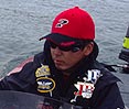 | 野本さんが得意とするのは、ディープレンジのパターンだという。なぜなら、「頑張ってボトムのハンプとかを見つけて地形を把握するば、それは自分の財産になるから」だそうだ。現在、野本さんは山中湖のボトムにつては、全域に渡って把握しているという。「魚探を見てパターンを組むという釣りは田辺(哲男)さんがやられていて、それが自分にもあっている気がして、修得しようと思いました」と語る |