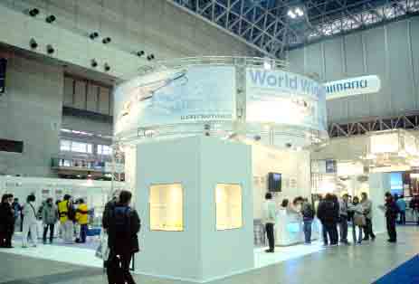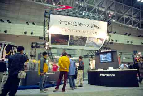 ハードベイト専門メーカー。今年も数々のプロトタイプを発表。全ルアーを外側に展示したブースが来場者の注目を集めていた。 |