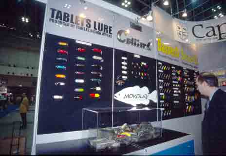 「モコリー」などを発表。ザリガニ型のジョイントルアーはそのボリュームに圧倒されてしまった。 |