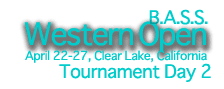 トーナメント2日めを終えてトップに立ったのは、前日の6位からジャンプアップを果たしたマーク・カイル。ウエイトが伸び悩む中、21ポンド13オンスというグッドウエイトをたたき出した。昨日の1位、ルーク・クラウセンは16ポンド13オンスにとどまり4位に後退。前日2位のマーク・クラッチャーは18ポンド4オンスを持ち込んでそのまま2位にとどまった。