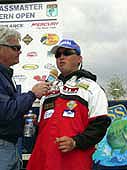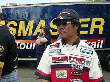 気になる日本人アングラーだが、期待された桐山孝太郎がリミットメイクを達成できず2尾でのウエイイン。6ポンド3オンスというウエイトにとどまったため、31位へと後退することになってしまった。また、清水盛三も風と濁りに悩まされて1尾のウエイインにとどまり、大きく順位を下げる結果となってしまった。日本人アングラーの中で気を吐いたのが、ノンボーターでの参戦だった安井研介。リミットに1尾届かない4尾でのウエイインだったものの、8ポンド近いビッグフィッシュを持ち込んで16ポンド3オンスというなかなかのウエイト。これが功を奏して安井は40位に入賞、生まれて初めてB.A.S.S.の盾を手にした。