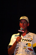 Elite 50の第1戦で、彼はリック・クランとプラクティスを共にしていた。でもタカヒロは1度もロッドを握ることなくその日を終えたらしい。タカヒロはリックにこう言ったそうだよ。「今日は1日、あなたがどうやって釣るのか、どう判断するのかを勉強したい」ってね。他には、どの大会にもいえることだけど、たとえば私がとある大会でいい結果を残したとしよう。するとタカヒロはいつも私のところに来て「どうやって釣ったんだ。パターンな何だったんだ」と熱心に質問してくるんだ。 |
