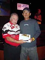 今年もまた日本人参戦者が大健闘した。ボーター部門で出場した桐山孝太郎さんは、昨日の19位から4位にまで順位を伸ばし、見事入賞を果たした。本人も「初日の68位がなければ、もう少し上位を狙えたはず」と苦笑しながら答えたものの、笑顔で表彰式を迎えた。 AAA部門では、サンディエゴ在住の矢田淳さんが2位に、鈴木美香さんは2日めのビッグフィッシュ賞に加え、12位に入賞した。また、加藤宏幸さんも16位に入賞している。 初日ボータートップ5 1位:ジョン・カー(27.51Lb) 2位:ゲーリー・ドビンス(26.15) 3位:バイロン・ヴェルヴィック(23.59