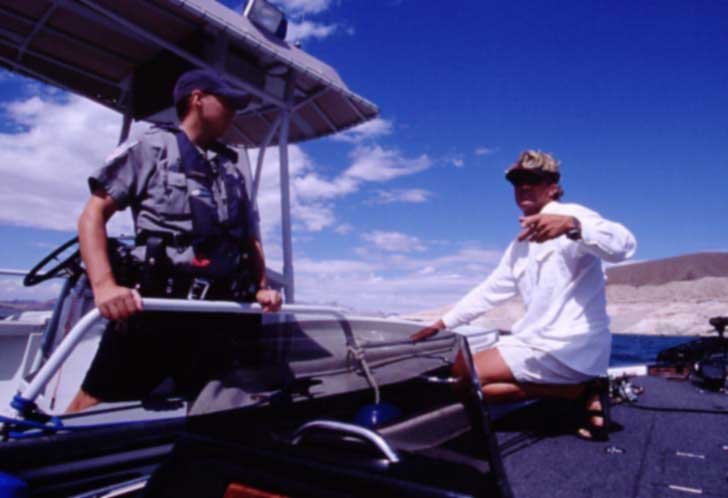 フィッシングライセンスはどこで買えばいい? A. トーナメントはもちろん、レイク・ミードでは普段の釣りでもフィッシングライセンスが必要になります。ライセンスはタックルショップやウォルマートなどで購入できます。レイク・ミードの場合、2つの州に跨がっているため、ネバダ州内のライセンスではなくコロラドリバー水系用の“Special Colorado River Fishing License ”を購入してください。 なお購入の際には身分証明書(パスポートなど)が必要になります。現在のところ、ライセンスは21ドルです(1年間有効)。 ライセンスを持たずに釣りをした場合、トーナメントの成績は取り消されます。また、監視員(コーストガード)などに見つかった場合、かなり高額の罰金を支払うハメになります。日本の遊漁券のような「現場売り」はないので注意してください。