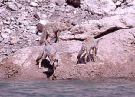レイク・ミードの湖畔に姿を見せたコヨーテ。日本では見られない動物たちに遭遇するのも、海外のバスフィッシングならではの楽しみだ